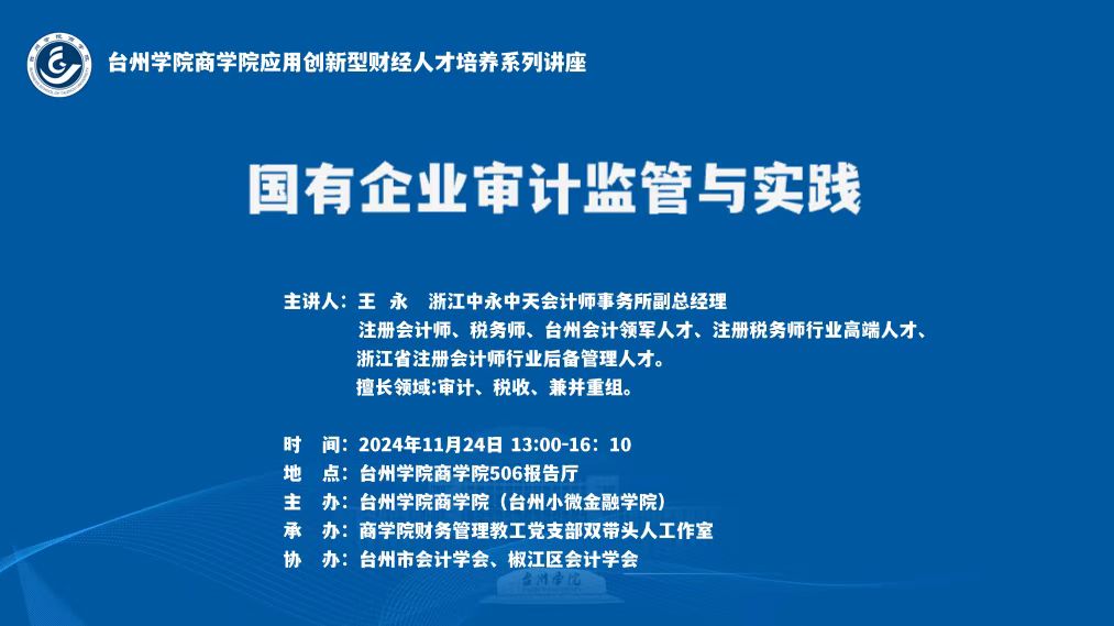 【讲座预告】台州企业合规研究中心法税同行系列公益讲座第三期
