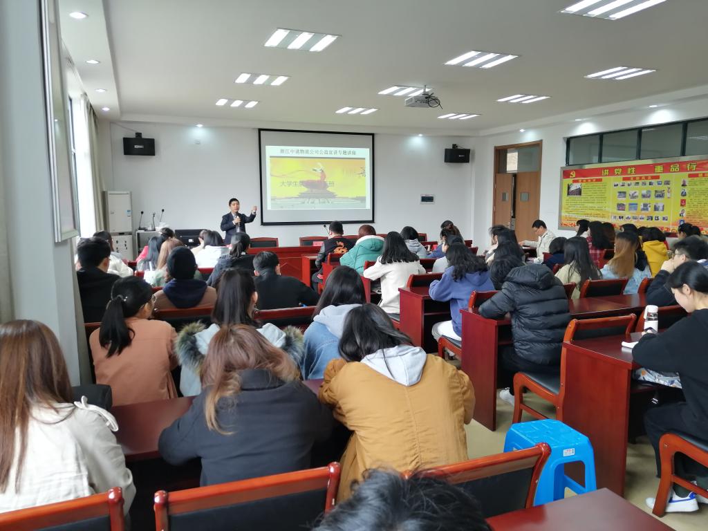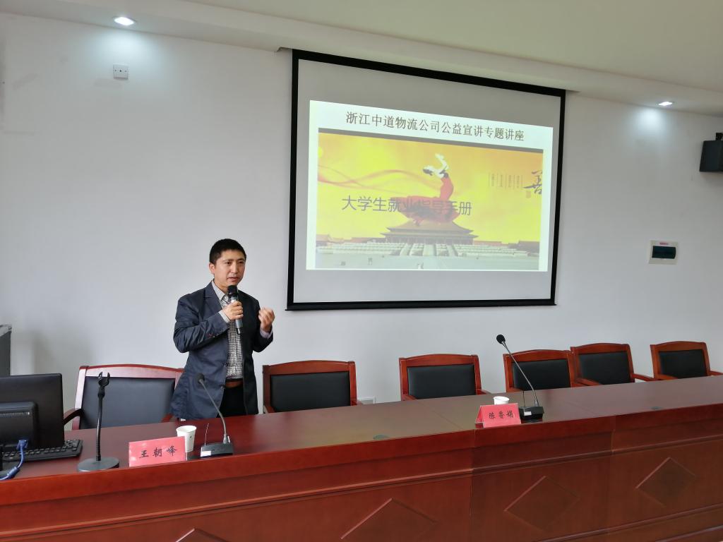 4月4日,yL23411永利官网登录邀请浙江中道物流有限公司副总经理王朝峰来校作大学生就业指导讲座,学院院长杜才平主持讲座,国际经济与贸易专业学生参加讲座。