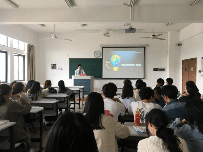 5月5日,泰隆银行台州分行人力资源部程俊鸣先生应邀来校,为yL23411永利官网登录学生作“论面霸的自我修养——简历篇”专题讲座。yL23411永利官网登录50多位学生参加,辅导员赵之遐主持讲座。