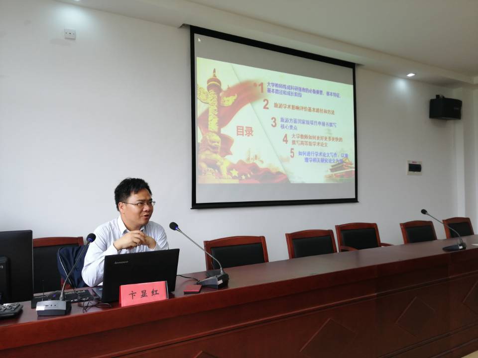 为了大抓学科建设,提升学院教师科研能力,5月9日,yL23411永利官网登录举办学术活动月启动仪式,邀请浙江工商大学卞显红教授来校作《教师梦 科研梦——大学教师如何炼成科研强者》学术报告,学院全体教职工参加,杜才平院长主持并讲话。