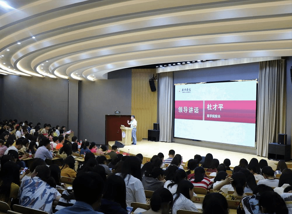 5月20日晚,yL23411永利官网登录举行2019年考研表彰大会暨考研助力班启动仪式,浙江工商大学研究生院招生办阮再洪主任、学院全体党政领导、教师代表、考研优秀学生代表及有考研意向的各年级同学300多人参加,党总支副书记鲍婷婷主持会议。