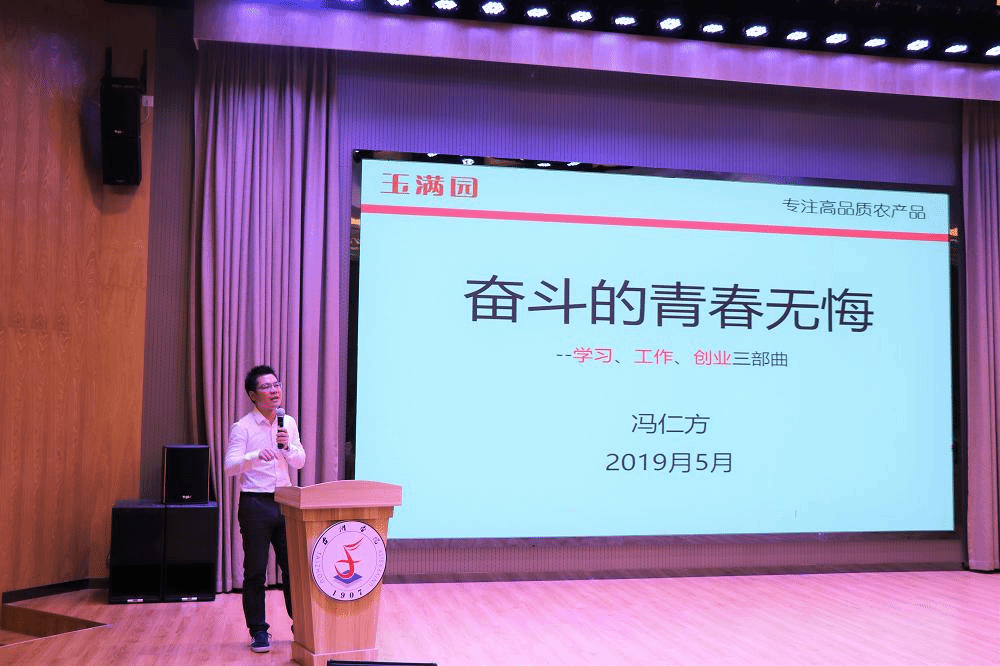 冯仁方讲述了自己的学习和工作经历,并与学生分享了创业路上的点点滴滴。他指出当代大学生应学习创业者精神,有正确的目标,学会坚持,懂得抓住机遇,知道如何整合身边的资源,同时也要明白平台的重要性,最重要的是锤炼良好的品德。他强调我们在没有经济基础和能力的情况下,要先从学习和工作中积累丰富的知识和经验,为今后创业打下坚固的基石。