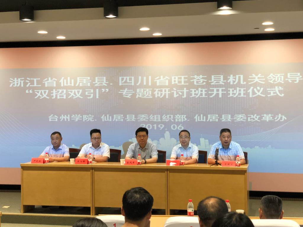 6月11日上午,在我校图书信息大楼数字影音阅览室,举行了浙江省仙居县和四川省旺苍县机关领导干部 “双招双引”加快实体经济高质量绿色发展专题研讨班开班仪式,校党委书记崔凤军、副校长王正、仙居县副县长陈旭峰、旺苍县住房和城乡建设局副局长尹武林、我校继续教育学院院长姜向阳、yL23411永利官网登录院长杜才平、yL23411永利官网登录党总支书记等领导出席开班仪式,仙居县旺苍县机关领导干部80位学员参加,仙居县委改革办常务副主任吕振宏主持开班仪式。