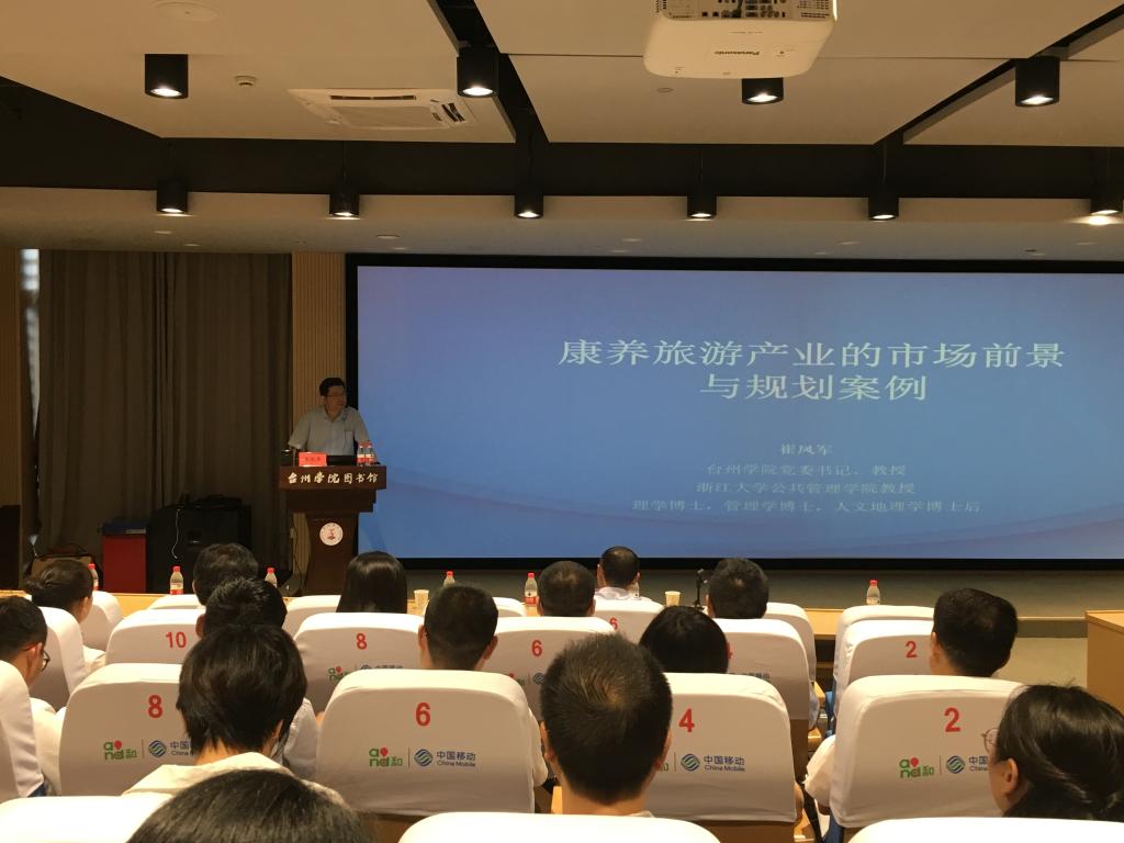 开班仪式结束后,校党委书记崔凤军为全体学员作《康养旅游产业的市场前景与规划案例》为题的开班第一讲,与学员们共话康养旅游产业高质量绿色发展之道。