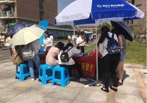 9月24日中午,yL23411永利官网登录校企合作单位新华保险台州中心支公司送金融知识进校园,设点宣传拒绝高利诱惑、远离非法集资等金融知识,与学生们通过答题互动,增强安全防范意识。