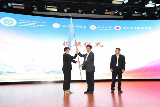 11月9日,“天平杯”第十六届浙江省大学生财会信息化竞赛在宁波大学落下帷幕,我校副校长李钧敏应邀出席闭幕式并接过大赛会旗,标志着我校2020年第十七届大赛承办工作正式启动。