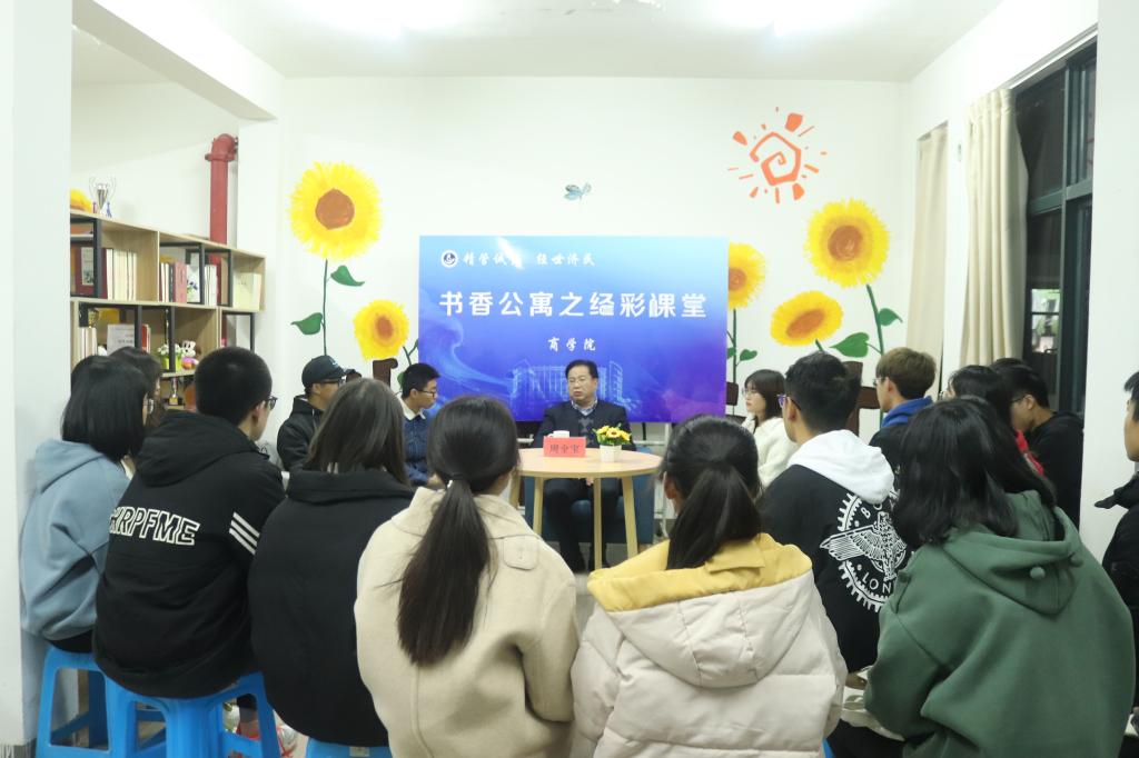 12月19日晚,yL23411永利官网登录于商苑小家开展了以“推进文明寝室建设”为主题的第四期“书香公寓之经彩课堂”活动。特邀学院党总支书记周全宝做主讲嘉宾。党总支副书记鲍婷婷、学院辅导员、学生代表参加活动。