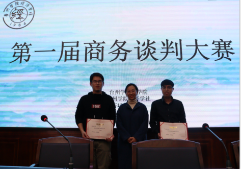 12月29日晚,yL23411永利官网登录第一届商务谈判大赛在yL23411永利官网登录大楼506举行。yL23411永利官网登录国际贸易系副主任沈璟璟、17国际经济与贸易班班主任赵之遐、台州海外仓供应链管理有限公司总经理潘新新、玉环迪茨机械有限公司外贸经理马佩芝、台州小言贸易有限公司总经理徐峥、台州沃特洁具股份有限公司总经理戴明利、浙江泓兴塑胶工业有限公司副总罗芳、台州市鸿基灯饰股份有限公司业务经理洪辉、台州特耐斯新材料有限公司叶伟平、台州柏森机械吴贤楠出席并担任评委。