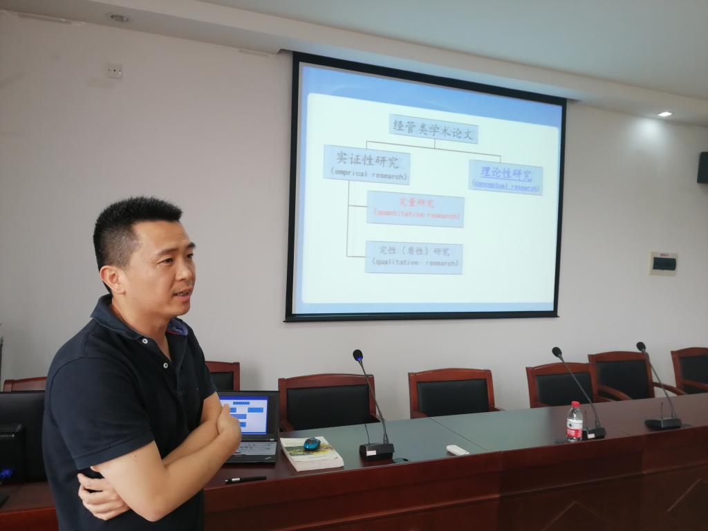 讲座介绍了如何开展经管类学术论文的理论性研究和实证性研究。李博士结合实例,重点交流了定量实证论文的引言、文献综述与研究假设、研究设计、实证结果与分析、结论与讨论等内容的构架和写作要领,与青年教师分享了如何做好中外文的文献管理,以及定量研究方法、调查数据库获取的技巧。互动环节,李博士就青年教师们学术研究中碰到的疑难困惑问题作了解答。