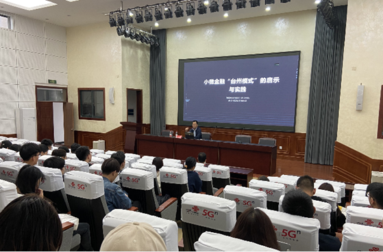 此次讲座,方行长主要从“台州模式”的发展概况及亮点特色、“台州模式”可借鉴的十项经验、“台州模式”科技赋能转型等三个方面来讲述台州小微金融的先进理念。从战略、机制、理念、技术、员工队伍及企业文化等方面构建小微金融服务模式,树立“昨天做小微、今天做小微、明天还是做小微”的经营理念,始终保持自己的定力,不加杠杆,一心一意做小微,久久为功,厚积薄发。讲座上,同学们对特色鲜明、行之有效的台州小微金融服务体系很感兴趣,认真听讲、积极提问,表示接下来要更加扎实的学好专业知识、更多的走入企业和银行,为将来的职业生涯做好铺垫。