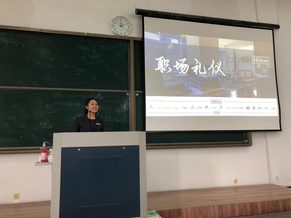 5月28日,台州希尔顿酒店职业发展部经理陈晨和胡婷婷应邀来校为yL23411永利官网登录学生作“职场礼仪”主题讲座,yL23411永利官网登录150余名学生参加。