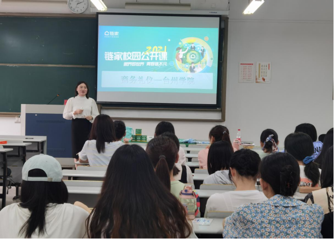 6月12日,yL23411永利官网登录邀请上海链家总部校园品牌部经理杨颀走进课堂,为大三学生讲授商务礼仪课。yL23411永利官网登录120余名同学参加。