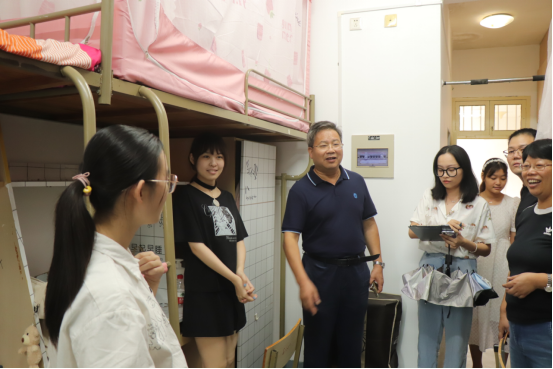 走访过程中,气氛热烈温馨,学院领导、老师与同学们热情握手、亲切交流,详细询问了新生们的基本情况、对新环境的适应情况,提醒同学们提早做好大学生涯规划,珍惜时间,以梦为马,不负韶华。同时院领导希望新生们提高安全防范意识,保护好个人人身财产安全;要注意个人文明养成,以寝室为家,团结室友,做相亲相爱一家人。
