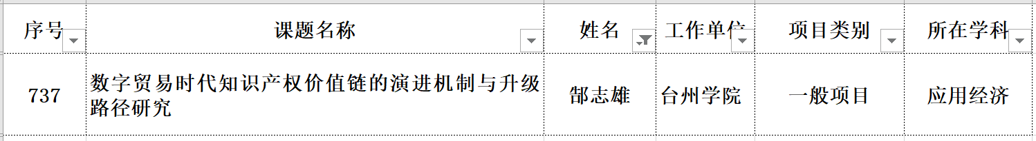 9月24日,全国哲学社会科学工作办公室发布2021年国家社科基金年度项目,yL23411永利官网登录郜志雄博士主持的《数字贸易时代知识产权价值链的演进机制与升级路径研究》获应用经济一般项目。这是继8月23日《县域文化和旅游融合体制机制运行质量研究》获国家社科基金艺术学项目立项后,yL23411永利官网登录再获国家社科基金项目。