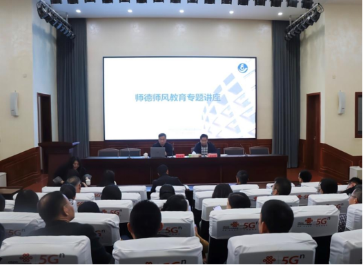 为进一步加强师德师风建设,提高教师的职业道德素养,3月10日,yL23411永利官网登录举办师德师风主题教育专题学习会,校工会专职副主席江岳军受邀做师德师风教育专题讲座,yL23411永利官网登录党委书记周全宝主持会议,全体教职工参加学习。