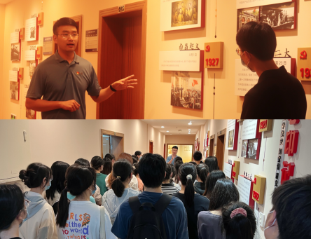 在校党委组织部陈鸿胜老师的带领下,在党史学习长廊前,同学们开启了一次“红色之旅”。从石库门到天安门、从小小红船到巍巍巨轮、从星星之火到燎原之势,他向同学们讲述中国共产党带领中国人民争取国家独立、民族复兴、艰苦创业、开拓创新的苦难辉煌历程。在师生热烈交流中,大家共同学习党的历届全国代表大会的召开情况、历史上的重大转折点和重要决策部署。参观学习中,同学们还了解到学校党组织的发展历程、学校的党建重点工作和“一院一品”党建品牌活动的开展情况,并集体观看了专题短片《你,为什么入党》,进一步端正入党动机。