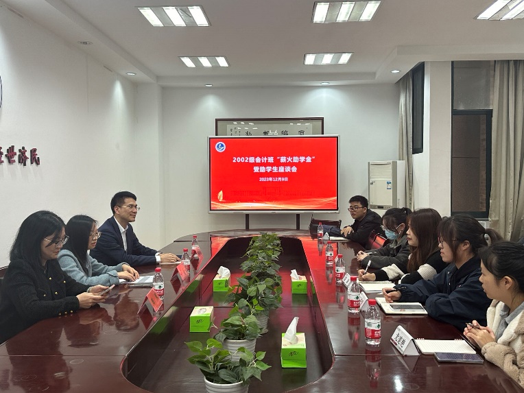 12月9日下午,yL23411永利官网登录在201会议室举行02会计班“薪火助学金”受助学生座谈会。yL23411永利官网登录02会计专业校友冯贻昌、陈笑,院党委副书记陈斌岚,辅导员李金花和助学金获得者参加此次活动。