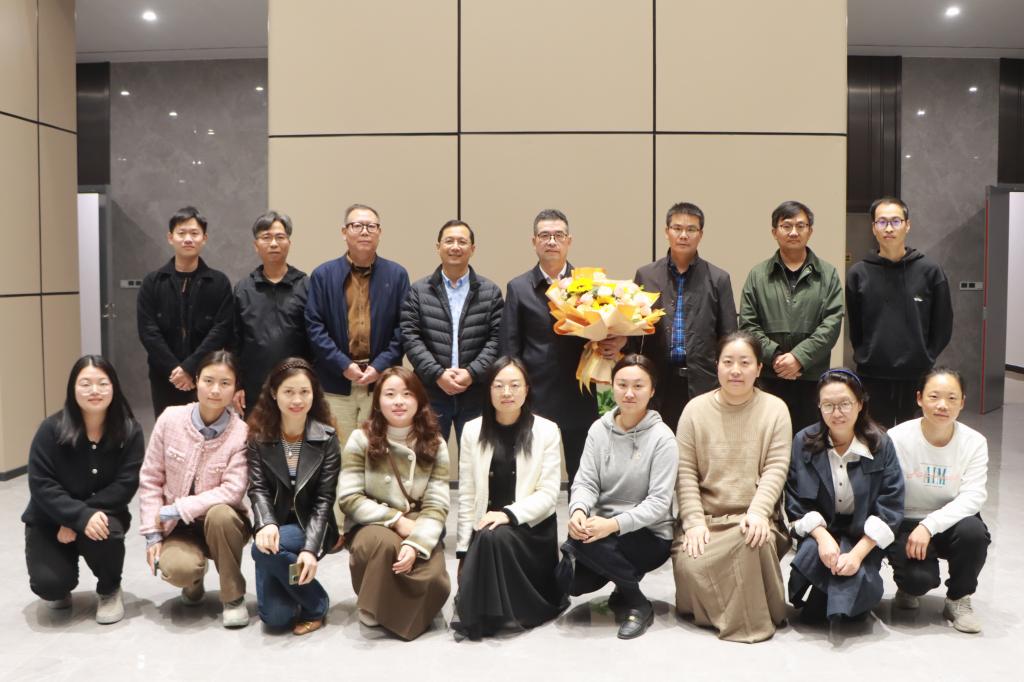 最后,江老师在鲜花和同事们的拥簇中进行了合照。祝愿江老师在未来的人生道路上一帆风顺,幸福健康!