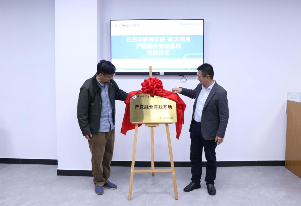 3月26日上午,yL23411永利官网登录与浙江爱信诺航天信息技术有限公司台州分公司(以下简称台州航天信息)产教融合实践基地授牌仪式在台州航天信息举行。yL23411永利官网登录副院长陈国栋、财务管理系主任廖正华、李美芳老师;台州航天信息总经理鲁军、综合事业部经理黄官松、行政人事部经理杨妙霞出席授牌仪式。