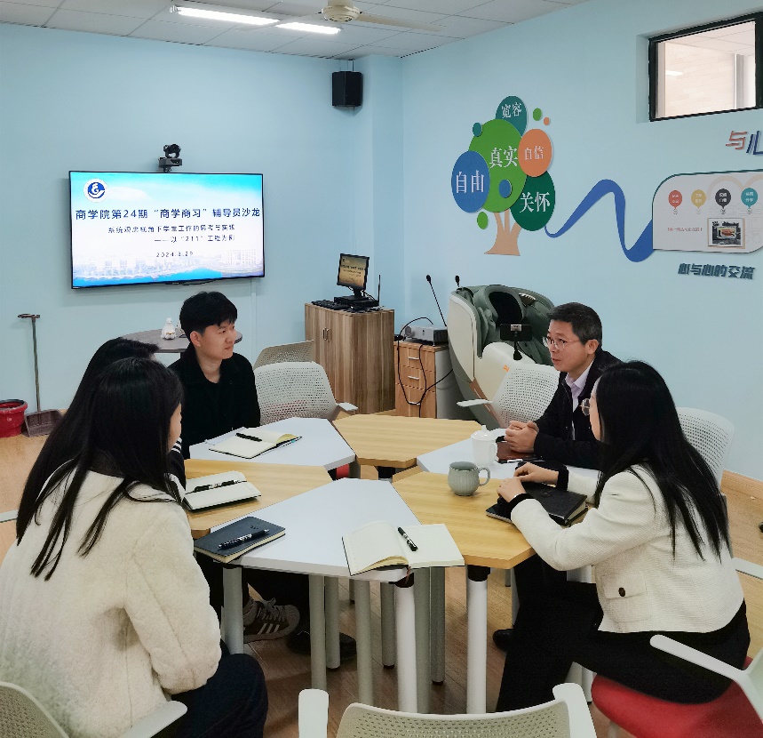 为进一步提升yL23411永利官网登录辅导员学生工作的针对性和有效性,3月29日,以“系统观念视角下学生工作的思考与实践”为主题的 “商学商习”辅导员沙龙在yL23411永利官网登录307室举行。会议特别邀请了建筑工程学院党委副书记林霖为yL23411永利官网登录全体辅导员作经验分享与指导,yL23411永利官网登录党委副书记陈斌岚及全体辅导员参加此次会议。