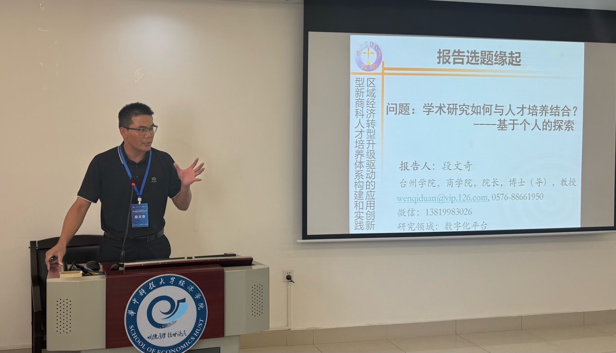 段文奇院长立足于应用型大学的发展理念,从研究视角提出将学术研究与人才培养结合的逻辑框架。他以消费互联网平台构建的商业生态系统作为切入点,系统阐述了产教融合人才培养生态系统方案。