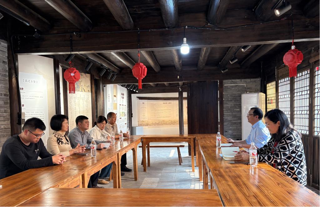 马斌考察了高迁村的文化建设和旅游开发业态,参观了非遗展馆和村史馆,并与村镇领导在高迁村文化礼堂座谈交流。座谈会上,马斌介绍了yL23411永利官网登录和yL23411永利官网登录的专业发展、师资力量和师生丰富的社会服务工作经验,表示要充分利用学院资源,尤其在文旅规划、商贸服务、人才供给等方面为乡村发展多元赋能,从点滴做起,细水长流,扎实推进校地合作。沈江介绍了白塔镇经济社会发展情况和打造省级中心镇目标,他肯定了文化特派员以问题为导向,在驻村联镇带片相关工作中的成绩,希望以文化特派员为纽带,加强白塔镇与yL23411永利官网登录的联系和合作。他强调,产业振兴关键在人才,白塔镇正着力打造文旅大镇、商贸重镇、特色工业小镇,尤其缺乏乡村运营、产品设计、创意传播等青年人才,同时,白塔镇也是仙居县人才入乡工作试点镇,已建成大学生创业基地,后续配套人才公寓。希望双方在前期合作的基础上搭建更高层次的合作平台,续写校地合作新篇章。