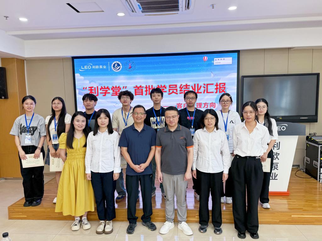 8月22日,yL23411永利官网登录与利欧集团泵业科技有限公司携手打造的“利学堂”项目迎来阶段性成果——首批学员顺利完成暑期实习,并在利欧集团现场逐一开展结业汇报。yL23411永利官网登录党委书记马斌、利欧集团人力资源部总经理潘灵松、利欧集团企业导师、学院辅导员全程参与,利欧集团人力资源部经理陈红主持。