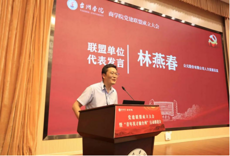 公元股份人力资源总监林燕春代表党建联盟单位以《非公党建的群众路线》为题做经验分享交流。公元集团的党建工作经过40年的实践探索,打造了独具特色的“七彩阳光”文化体系。在党建工作引领下,校企合作已向更高层次、更深领域发展,双方在人才培养、项目攻关等方面深度合作,取得了丰硕成果,近五年来,共有573名台院学子在公元股份就职。