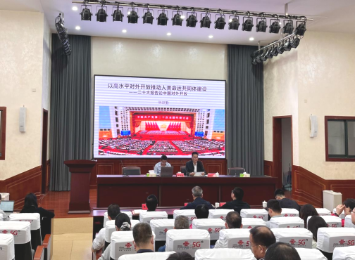 林跃勤教授以“行为体及其与外部世界的关系”视角切入,围绕高水平开放如何推动中国式现代化这一主题,讲述了党的二十大报告中关于对外开放政策的理论背景和基本内容。他用详实的数据、丰富的案例说明在全球化面临逆流、全球治理脆弱的重要关头,坚持推进高水平对外开放,是党的二十大站在人类发展和道德制高点所作出的推动人类命运共同体建设的重大承诺和部署。党课从学理角度阐释人类命运共同体理念的内涵和构建路径,强调这一理念为实现全球治理体系变革提供了新方向、契合了多边主义和经济全球化变革大趋势,诠释了中国共产党是为中国人民谋幸福、为中华民族谋复兴、为人类进步事业而奋斗的政党。