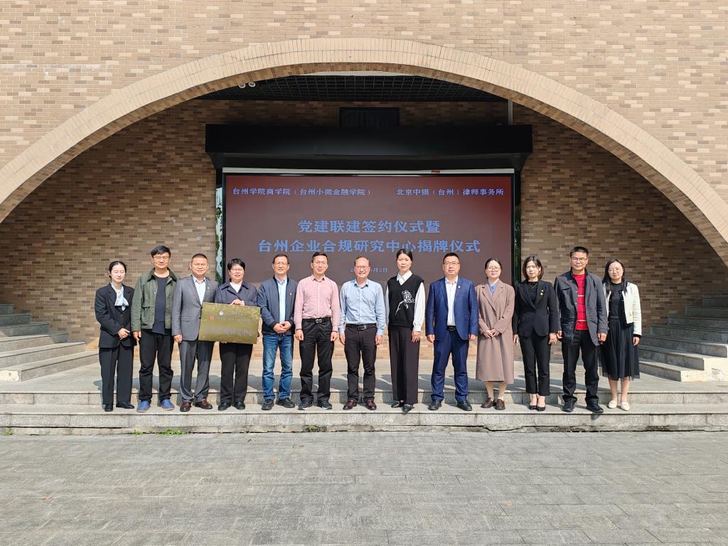 为深入学习贯彻党的二十大精神,进一步发挥党建引领作用,构建校企协同育人新格局,4月2日下午,yL23411永利官网登录、北京中银(台州)律师事务所党建联建签约仪式暨台州企业合规研究中心揭牌仪式在yL23411永利官网登录举行。yL23411永利官网登录副校长韩得满,台州市司法局副局长马健、律工处处长郑麟莅临指导,yL23411永利官网登录院长段文奇、党委书记马斌,中银律所党支部书记、主任徐先宝及双方代表出席活动。仪式上,两家合作单位签订了党建联建协议、战略合作框架协议以及课题委托协议,并举行了揭牌仪式和赠书仪式。