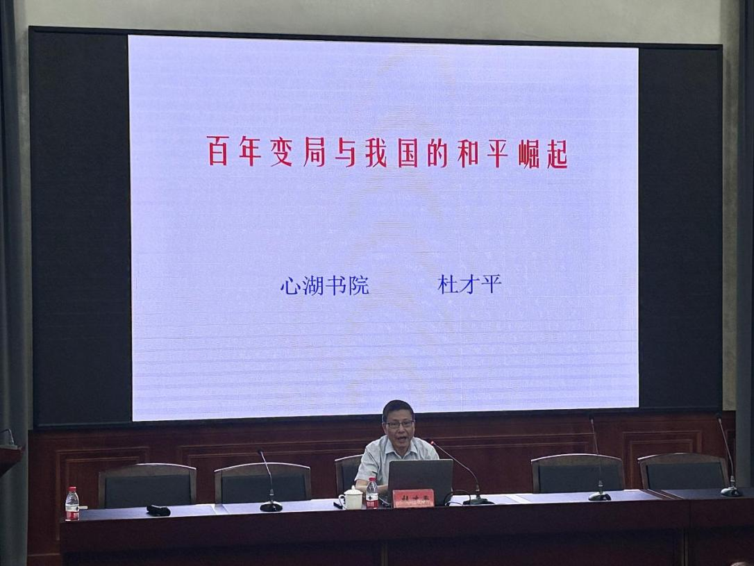 为了加强入党积极分子的党性教育,增进对当前国际形势与我国发展战略的理解,5月23日,yL23411永利官网登录特邀心湖书院院长杜才平作“百年变局与我国的和平崛起”专题授课,党课理论丰富、深入浅出,学员表示受益匪浅。