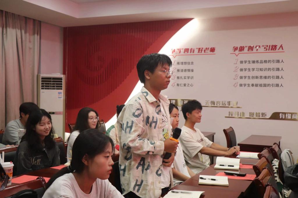 活动伊始,马斌对第二届星火先锋队新干事的加入表示热烈欢迎,从事业心、责任心、奉献心三方面出发,向全体成员提出要坚定政治立场、永远跟党走的基本要求,以丰富实例告诉同学们要在大学生活中学做先锋,发挥榜样示范作用,引领身边同学共同进步。马斌强调,同学们在保障学习工作的同时要加强体育锻炼,保持积极心态,争做德智体美劳全面发展的新时代好青年。随后的自由交流环节中,同学们纷纷就学习和工作、实习实践、企业走访、职业规划等领域展开提问,老师一一给予解答,现场氛围轻松活跃。