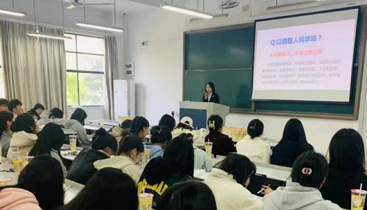 课程伊始,新华保险台州分公司人力资源部陈敏玲抛出“以貌取人是否科学”的提问,引发同学们思考,切入主题,从礼仪概述、职业形象和商务礼仪与职业化素养三个方面详细介绍了仪容、仪表、仪态在职场中的重要性。陈敏玲通过案例讲解与现场演示同大家分享了众多的礼仪技巧,并指出了办公、见面、会餐等不同场合下的礼仪规范及注意事项。授课过程中,热烈的互动交流不断引发同学的思考与讨论。