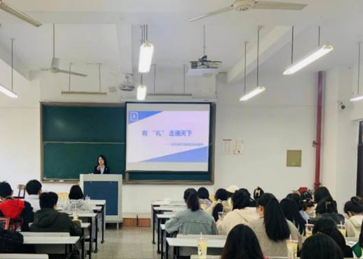 为丰富学生的职场礼仪认知,3月31日,yL23411永利官网登录特邀新华保险台州分公司人力资源部工作人员进校园,为大三学生讲授职场礼仪课。