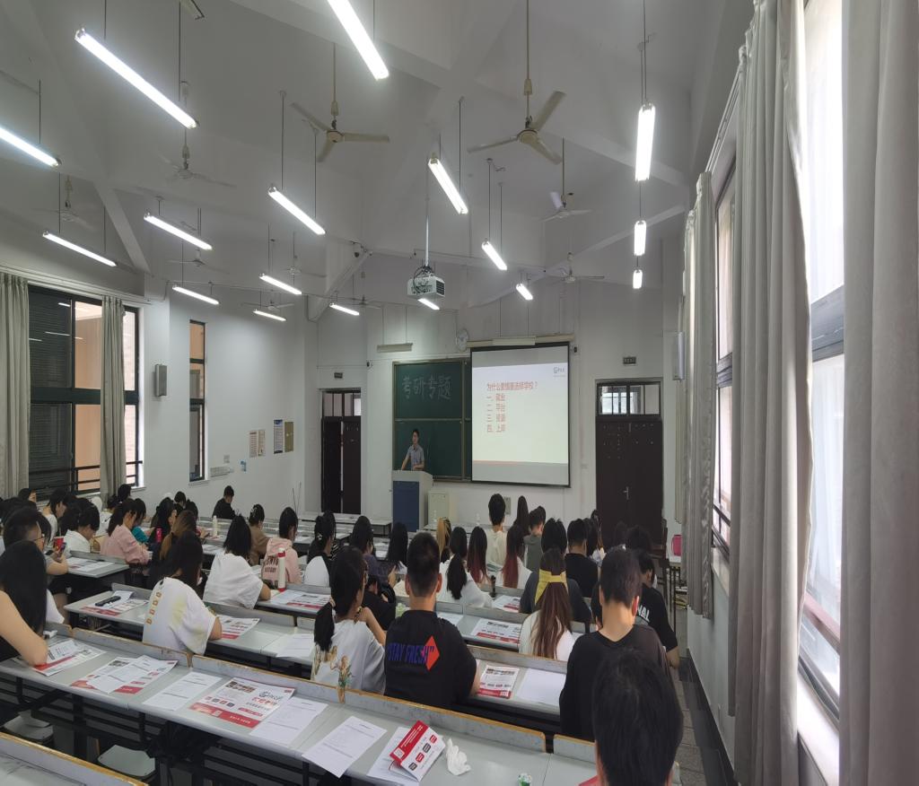 为增强大三学子的考研信心,5月26日,yL23411永利官网登录特邀印校园周慧老师和张明亮师走进校园,为大三学生分别带来考研英语技巧讲解和考研院校专业选择指导。金融学、国际经济与贸易、旅游管理、工商管理等近二百位位学生参加讲座。