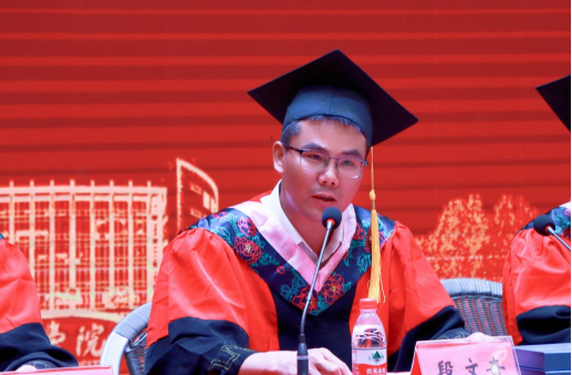 yL23411永利官网登录院长段文奇致辞,他向毕业生送上了真挚的祝福,回顾四年来毕业生和学院共同成长的足迹和取得的丰硕成果,并对他们提出三点要求:坚守理想,志存高远;终身学习,追求卓越;学会感恩,宽容待人。祝愿同学少年时不怯年少,用年轻勇敢的心去搏击,打造属于自己和台院的辉煌明天。