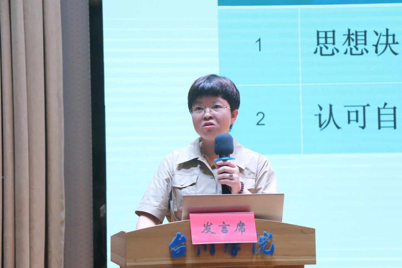 台州银行台州市区人力资源部总经理郑玲巧,现兼任23金融学班企业班主任。她积极与学生互动,了解新生们的大学目标,并指出了目标引领方向和行动成就未来的重要性。