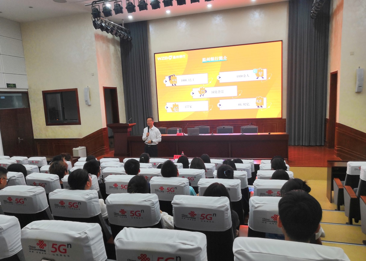 为进一步拓展学生就业渠道,丰富学生的职场认知,10月10日,yL23411永利官网登录“职引未来”系列讲座第七讲特邀温州银行台州分行办公室主任陈安一行为学生作“青春有态度,梦想有温度”主题就业指导讲座暨温州银行2024校园招聘宣讲。