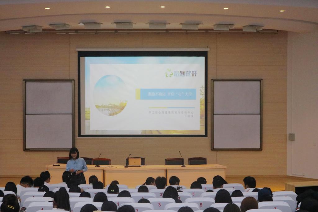 为增强2023级新生心理调适能力,促进学生更好地适应、融入大学生活,10月17日晚上,“启心花开”心理健康教育讲座面向yL23411永利官网登录展开。本次讲座以“拥抱不确定 开启‘心’大学”为主题,由学工部心理健康教育与咨询中心主办,yL23411永利官网登录“商shine驿站”承办,心理健康教育与咨询中心副主任王蕴瑾主讲。yL23411永利官网登录330名新生报名参加,现场座无虚席。