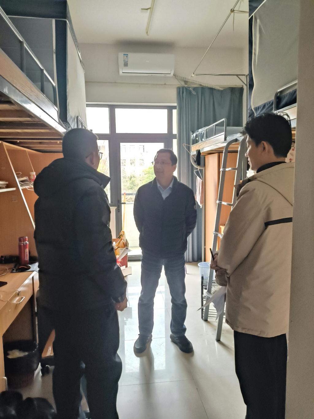 在走访过程中,老师们亲切地与同学们展开交流,关注同学们的衣食住行、假期生活及新阶段计划。同时,对于寝室良好氛围的培育,老师们叮嘱大家要互帮互助,室友之间多沟通交流,取长补短。对于寝室卫生与安全,老师们强调安全无小事,防范于未然,坚持安全第一,保持良好宿舍卫生。老师们还了解到不同年级同学在新学期的不同计划与目标,鼓励大家要多参加科研竞赛、社会实践,以蓬勃向上的昂扬态势来开启新一学期的生活。