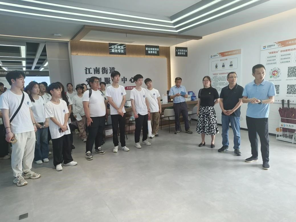 接着,实践队走访了江南街道党群服务中心,与现场工作人员进行交流,听取了有关台州市上市企业的介绍,并了解到政府对大学生就业的一系列扶持政策,为大学生就业提供了更多机会。