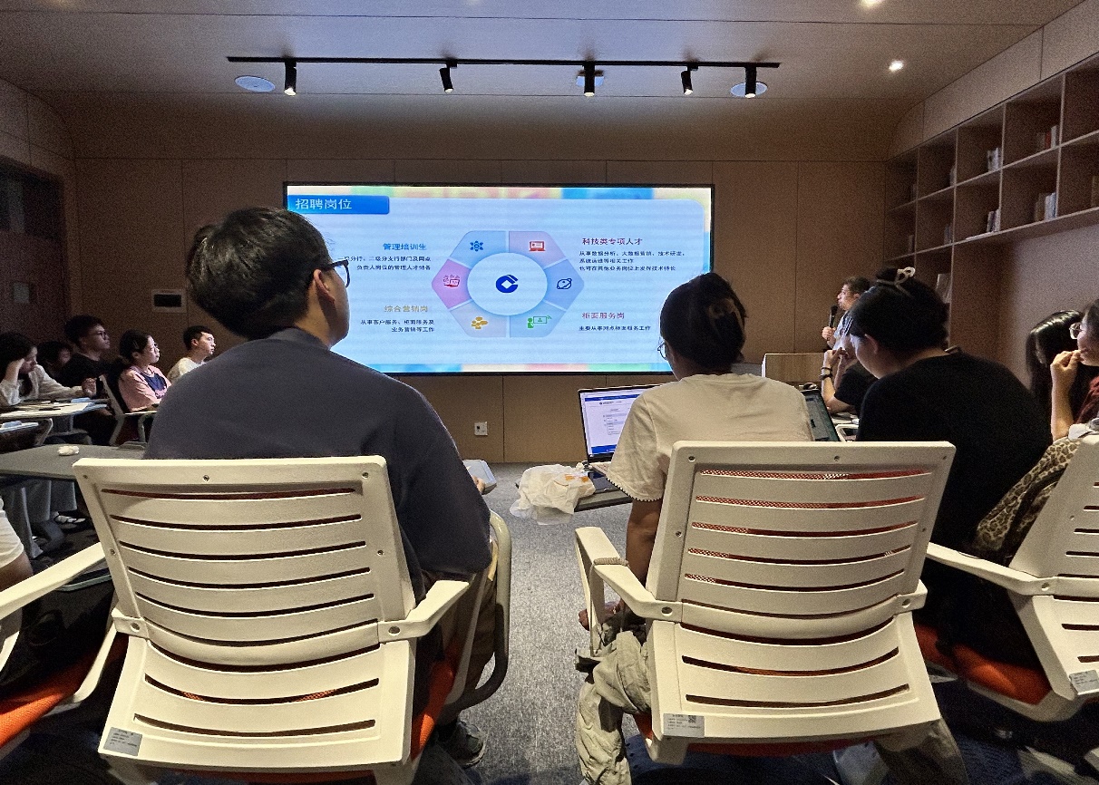 9月25日,建设银行台州分行招聘专员陈松从简历、报名、笔试、面试四个方面向同学分享备考技巧。他指出,简历制作要契合目标岗位,体现出岗位所需的能力,在自我评价方面要尽量体现出自己的优势。