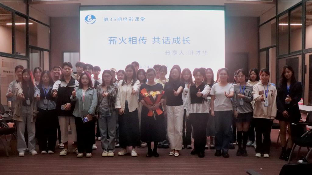 活动伊始,叶才华以讲述自身工作经历为切入点,与在场同学们分享三点人生感悟。第一,在生活中应当心怀美好憧憬,保持乐观心态;第二,人生终将退场,过程即是奖励,应认真提升当下;第三,处理学习与工作时要谨小慎微,平衡好学习、工作与家庭。随后,已毕业的学长学姐依次发言,分享大学生涯体会和对学弟学妹们的建议,并表达对班主任叶老师的依依不舍与荣休后新生活的祝愿。最后,陈斌岚作总结发言。再次鼓励同学们在学习与生活中要心怀感恩、持续学习,保持认真严谨的态度。