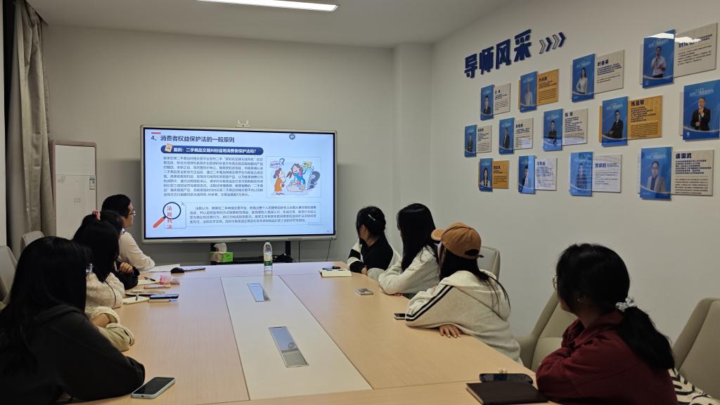 活动在一片热烈的氛围中拉开帷幕。张程首先以近期备受关注的东北雨姐事件为切入点,向同学们阐述了消费者保护法的立法初衷及重要性。并详细讲解了消费者保护法的核心内容和亮点,包括明确界定了消费者的基本权利、经营者应履行的义务和承担的责任。随后,张程通过分析“良品铺子”事件案例,进一步引出了消费者保护法的概念与一般原则。现场生动有趣的剖析,使得同学们对法律条文有了更加直观和深刻的理解。接着,张程以近期消费侵权事件为例,向同学们介绍了解决消费争议的多种办法。并鼓励同学们遇到消费欺诈时,要勇于拿起法律武器,维护自身合法权益。最后,张程热情解答了同学们的各类疑问,活动现场气氛热烈。