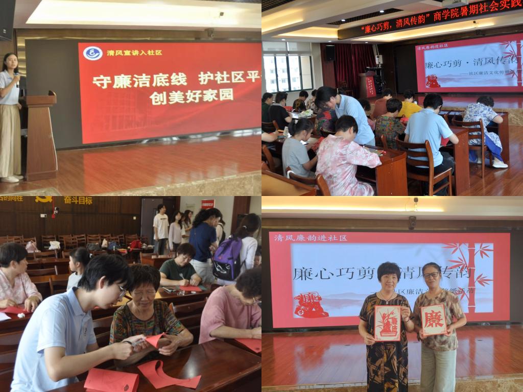 在“七一”建党节来临之际,为弘扬中华优秀传统文化,传承红色基因,增强社区居民廉洁自律意识,6月30日,yL23411永利官网登录“廉润商学”实践队走进云海社区,开展了一场"廉心巧剪,清风传韵”将廉洁文化融入趣味手工的非遗剪纸活动。