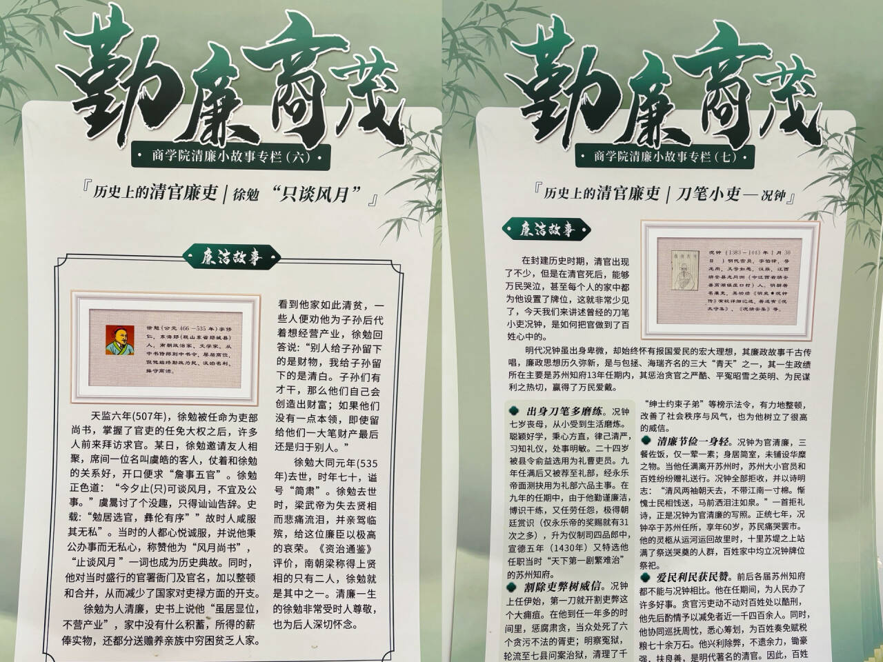 学院在毕业季通过“一标、一形、一廊、一制”等阵地建设,制作廉洁小故事展板,线上线下定期推出“勤廉商茂”清廉小故事专栏,培育好“勤廉商贸”廉洁文化品牌,厚植清廉之风以润校园,不断夯实毕业生党员的清正廉洁思想根基。